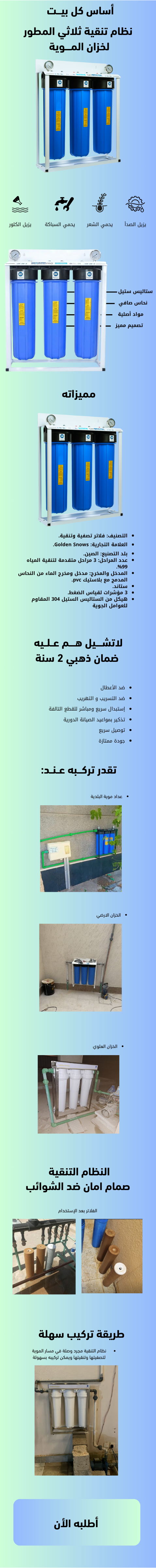 فلتر ماء للخزانات جامبو فيتنامي بـ 3 مراحل فلترة، مياه نقية خالية من الملوثات والشوائب: